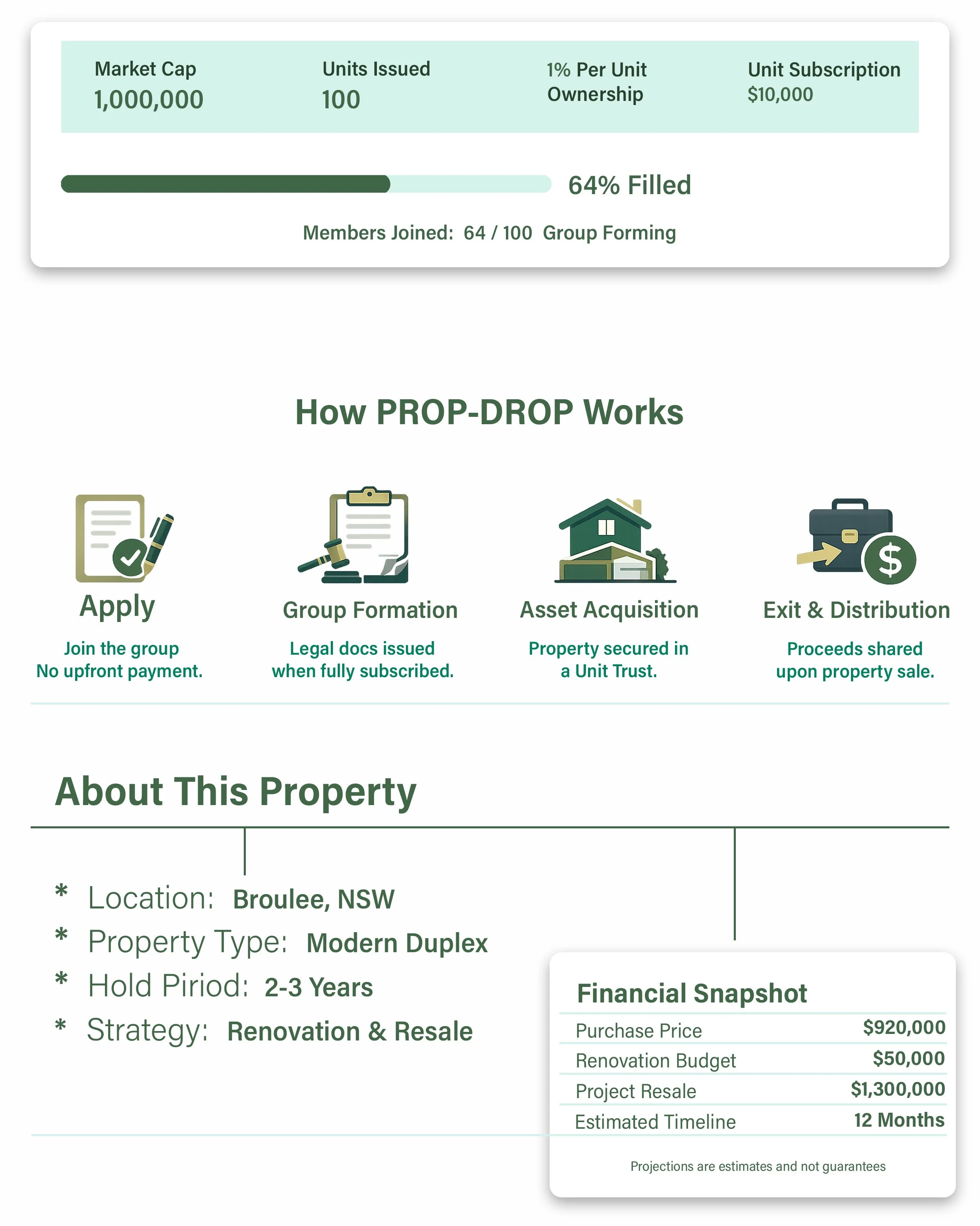 Own 1% of Real Property.Structured Participation via Dedicated Unit Trust Participation involves risk. See disclosures below Property Address1234 Ave. Moruya NSW 2537